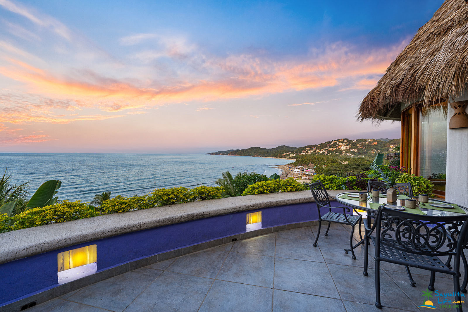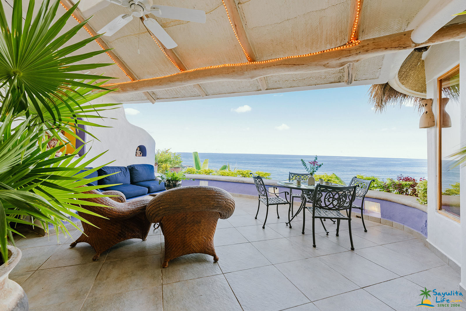 Palapita Evelyne – A spacious open-air casita just steps from the sand, featuring a master en suite bedroom (king-size or twin beds), a second bathroom on the main floor, and an expansive private deck just 50 feet from the surf. A 100-yard beachfront walk takes you to Sayulita’s top restaurants, making it the perfect seaside retreat.