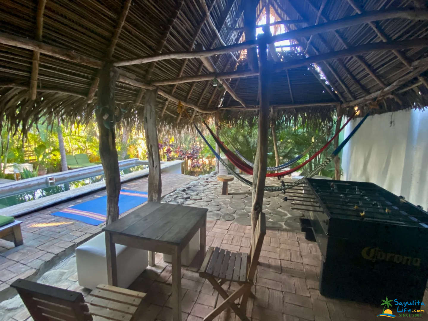 The thoughtful layout of the property creates a sense of privacy, with multiple guest entrances and well-spaced casitas that allow each stay to feel personal and tucked away. Guests can enjoy two shared pool areas, a breezy rooftop terrace, and relaxing hammock spaces—perfect for unwinding or connecting with others. For a bit of fun, the game room features a pool table and foosball for friendly competition.