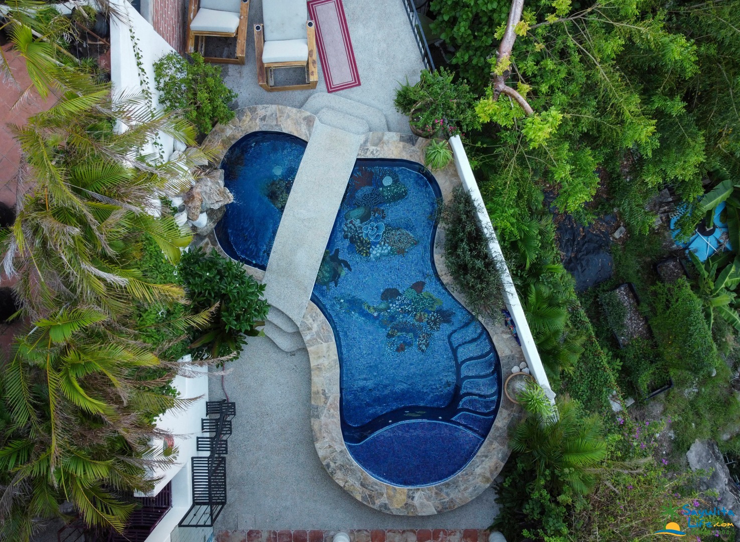 Step into luxury with a stunning heated saltwater pool adorned with the finest Italian and mosaic tile in town. The tranquil sounds of the waterfall cascading into the pool set the scene for unforgettable gatherings at the outdoor kitchen and dining area on the pool level.