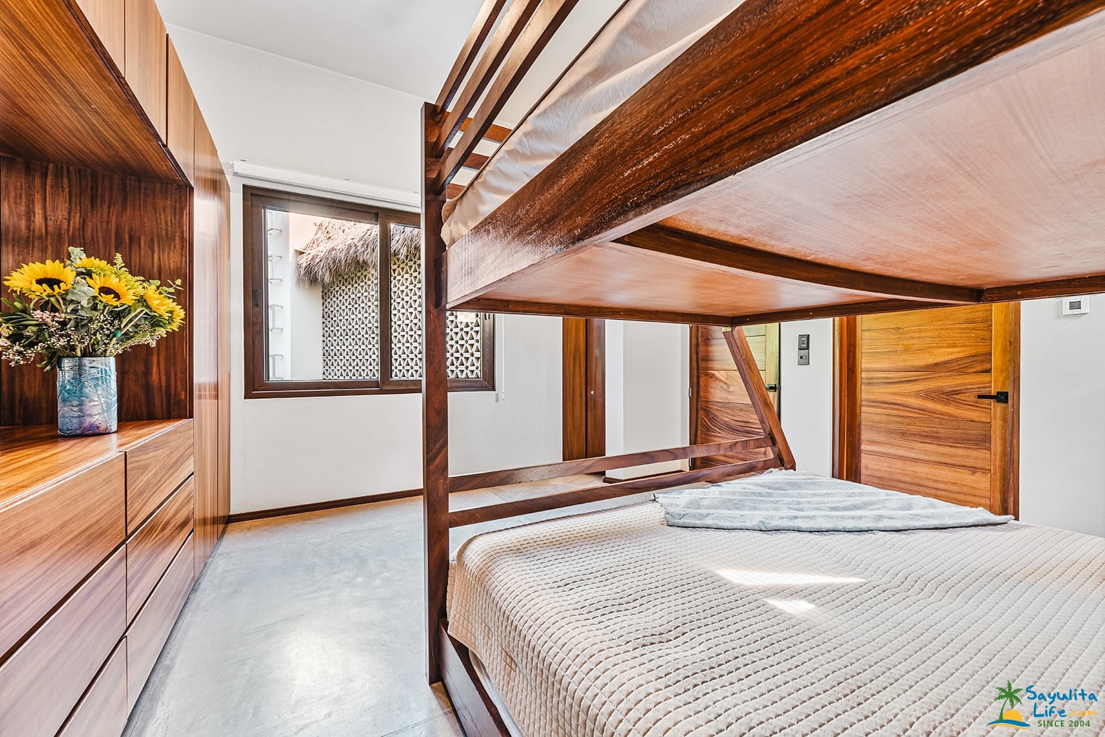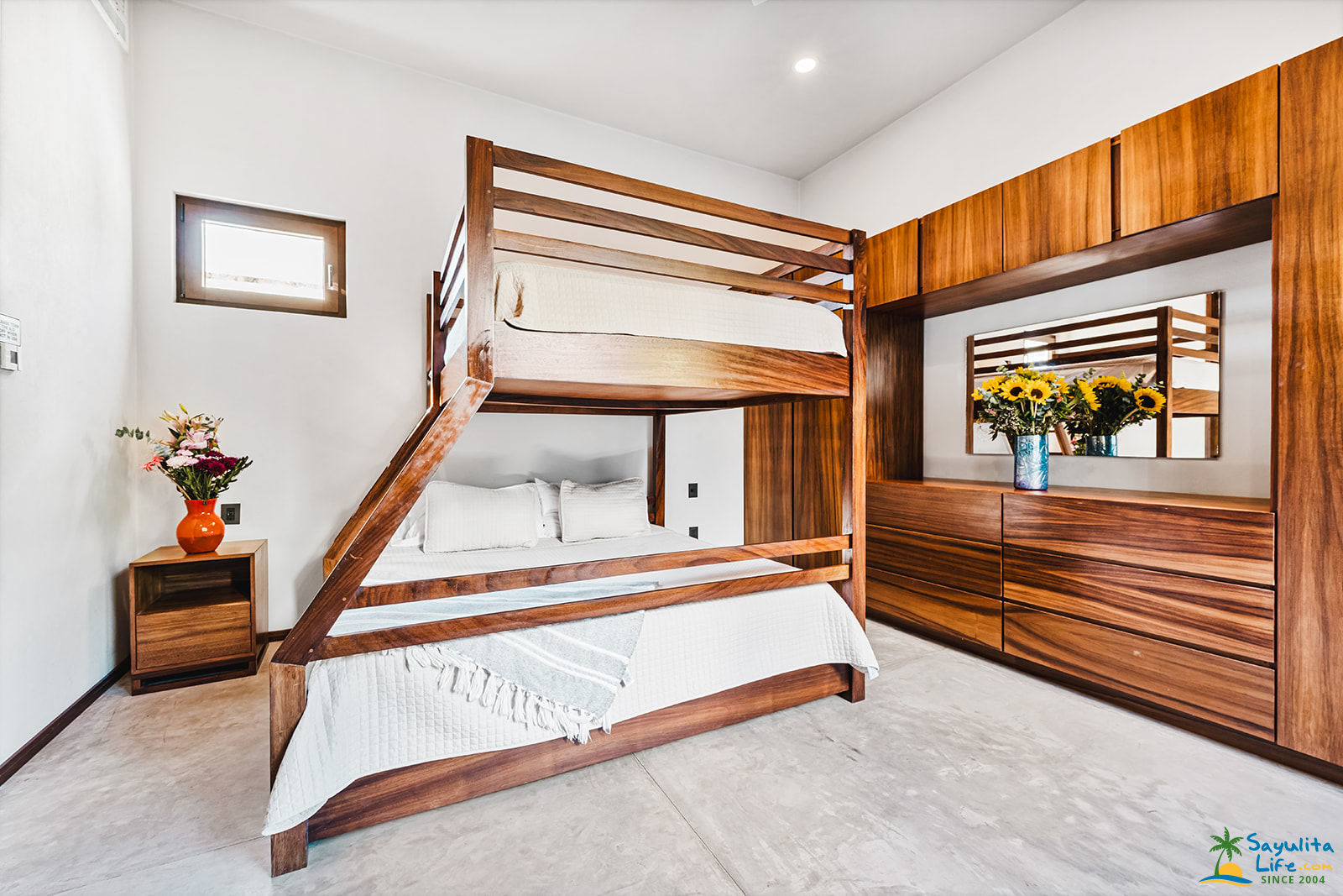Bedroom 4. King (down) and queen (up) bunk bed with ensuite shower bathroom, and ample closet space for 4 or more people.