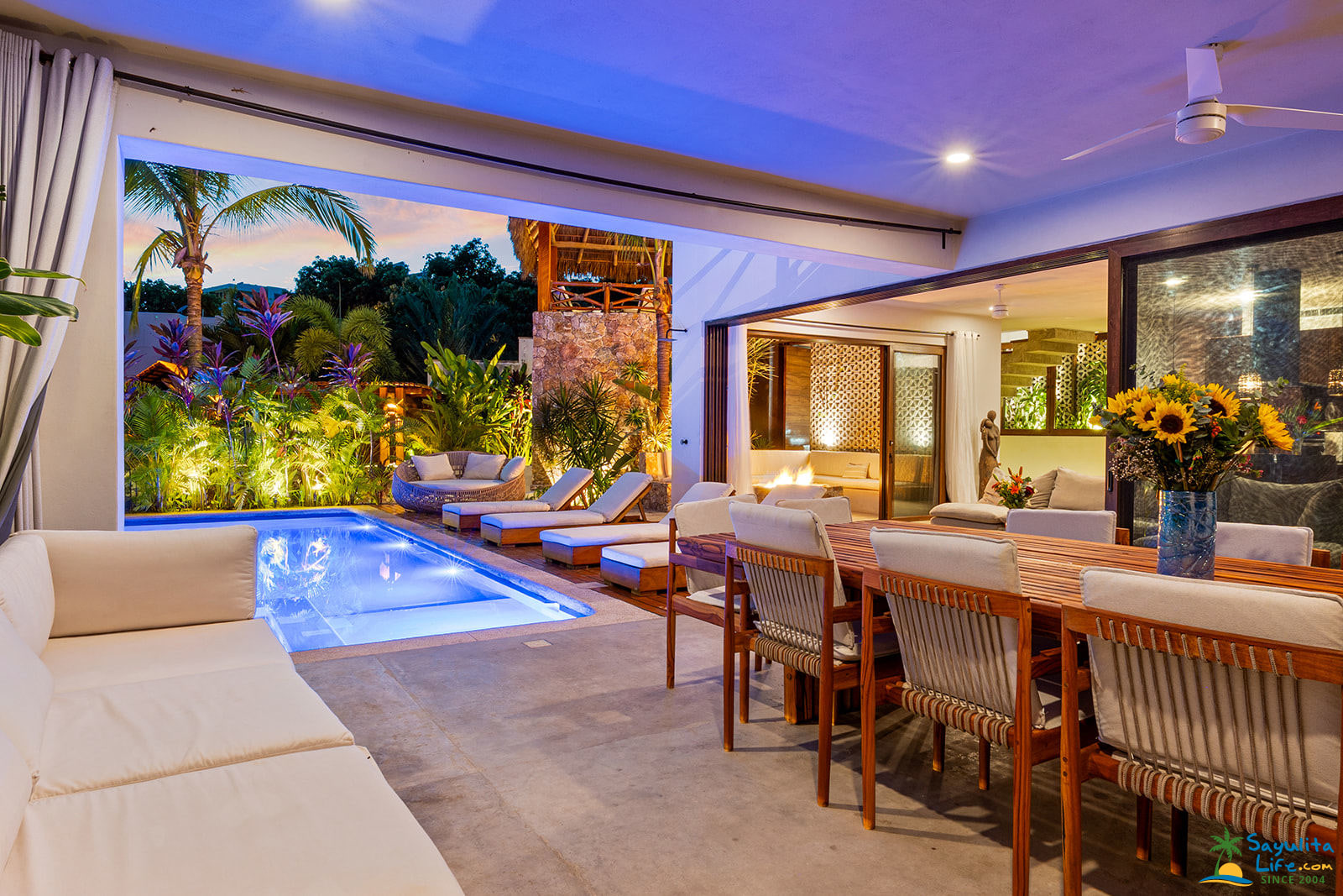 Sign In Create free accountCasa Serene in Sayulita is a brand new, luxury villa nestled in the jungle of Sayulita and was built with privacy, comfort, peace and tranquility in mind. This architect's dream is just a 5-minute golf cart ride from the centre of town, in a gated and secured property and provides a serene retreat surrounded by lush jungle and colourful gardens allowing you to fall peacefully asleep while being just moments away from the vibrant local scene.