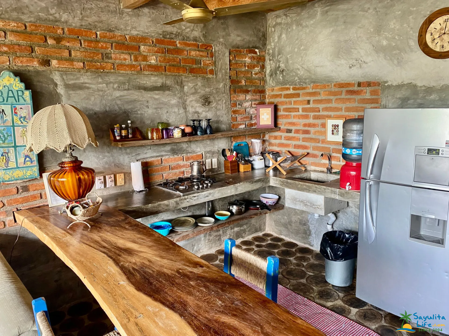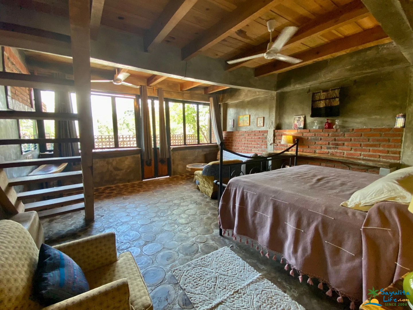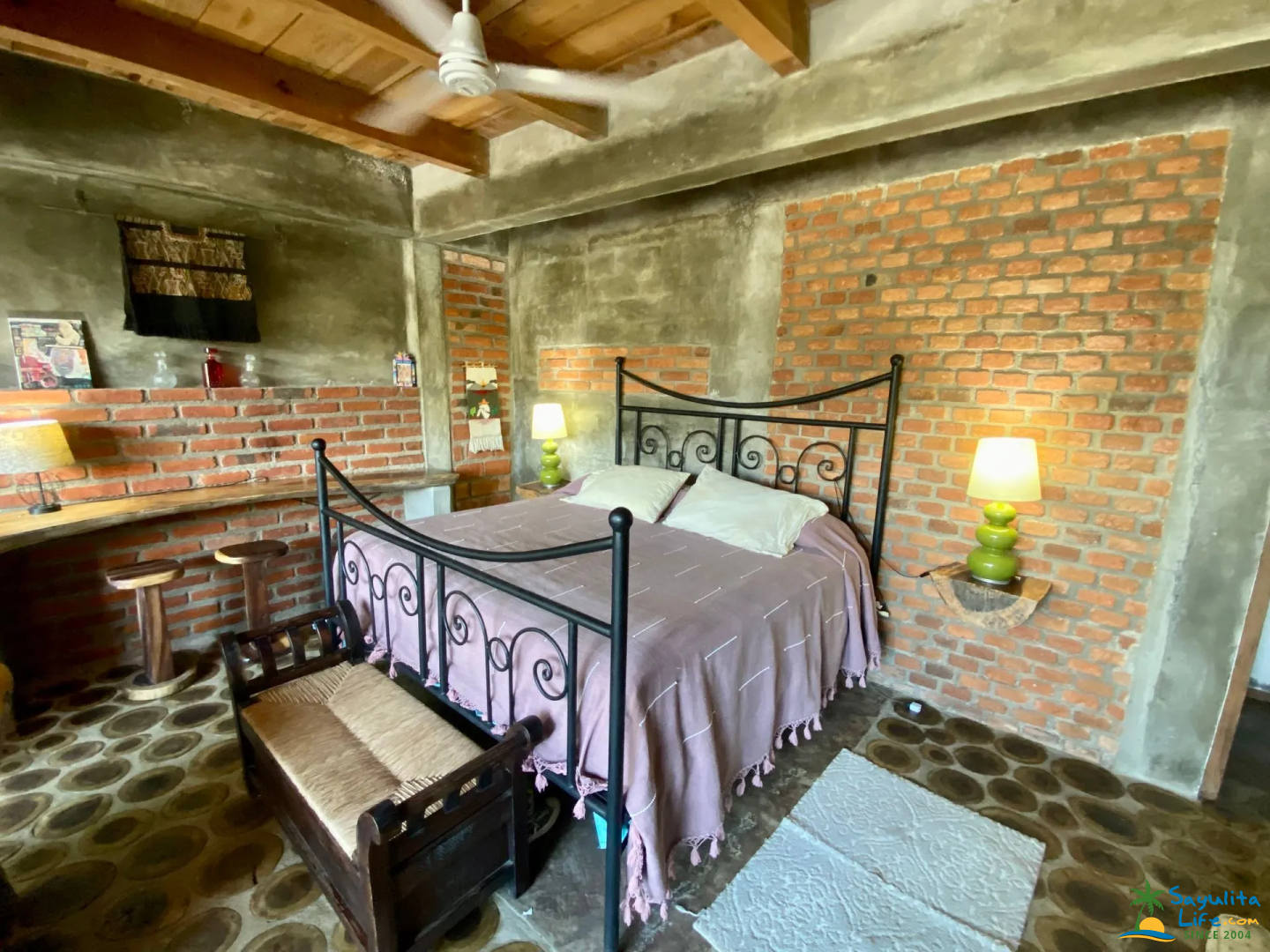 Set within the eclectic property of Casitas Eclécticas, this unit is one of eight uniquely designed casitas connected by winding pathways, staircases, terraces, and lush tropical greenery. Located on the peaceful South Side of Sayulita, it offers a quiet escape from the downtown energy while remaining within easy walking distance of everything. The main beach and plaza are just a 10-minute walk away, along with small grocery stores, a tortilla factory, flower shops, and cozy cafés.