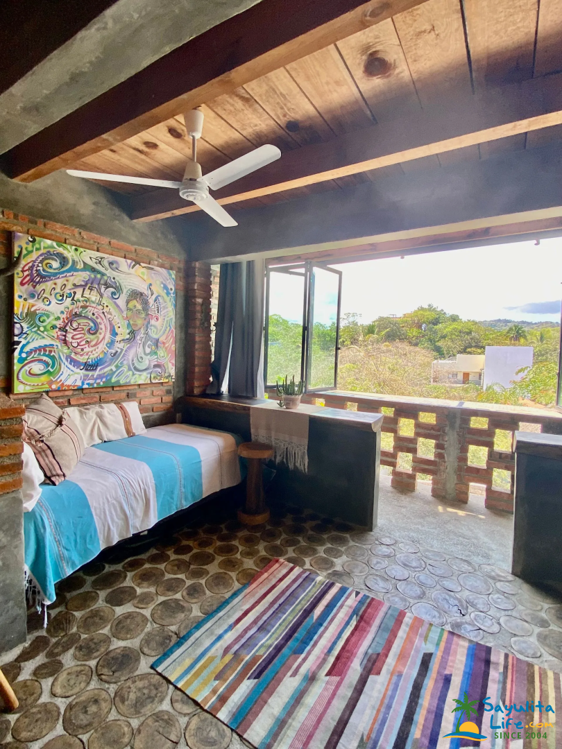 Casita Bunker at Casitas Eclécticas in Sayulita is a unique two-level retreat designed for 2–3 guests, offering a spacious layout, abundant natural light, and beautiful valley views. Blending comfort with an open, airy design, this casita invites you to fully relax while staying connected to the surrounding landscape.