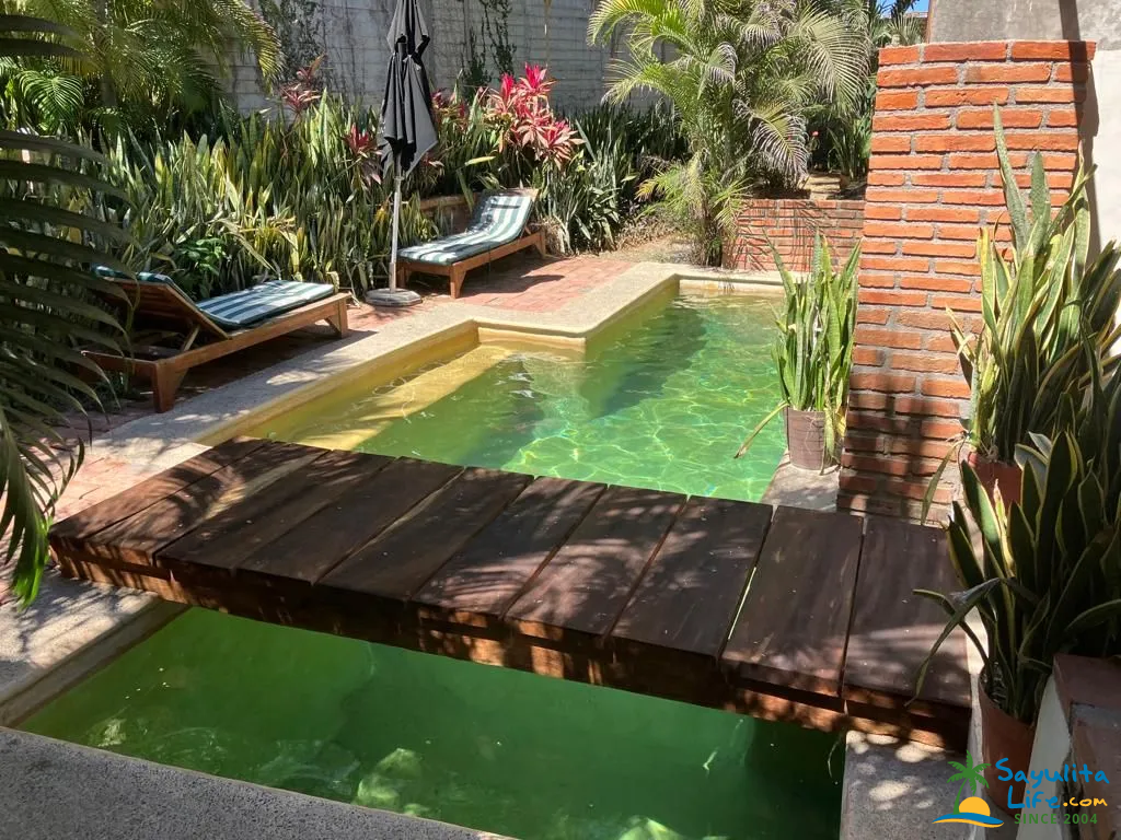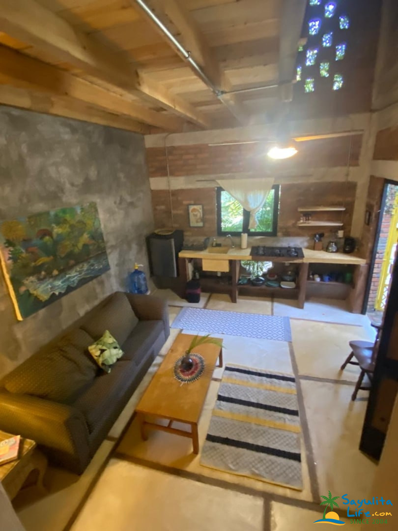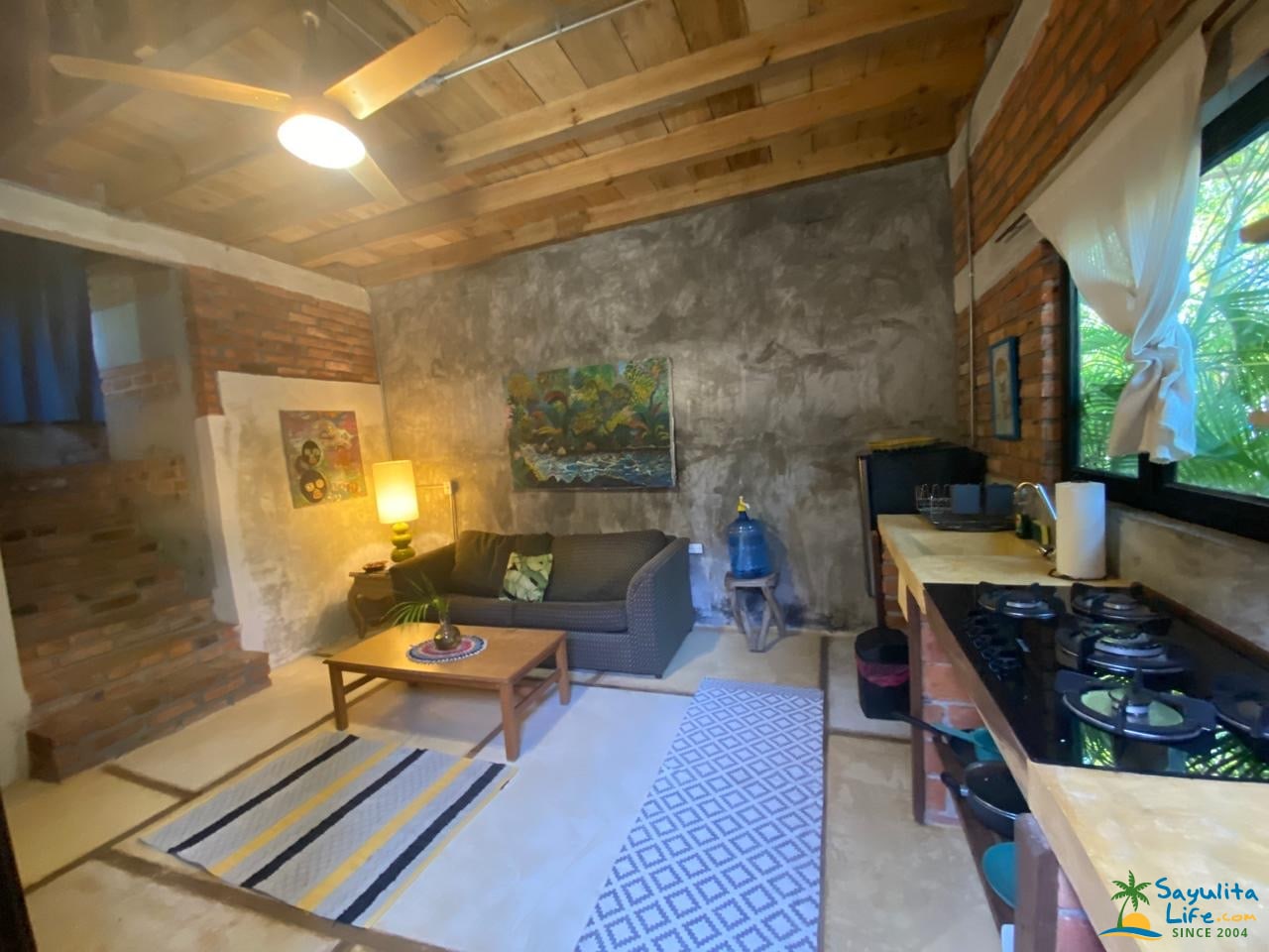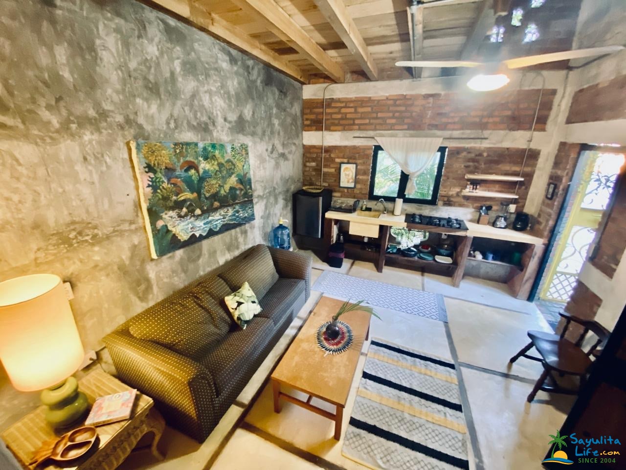 Set within the eclectic property of Casitas Eclécticas, this bungalow is one of eight uniquely designed units connected by winding pathways, staircases, terraces, and a vibrant plant-filled oasis. Located on the peaceful South Side of Sayulita, it offers a quiet escape from the downtown energy while remaining within easy walking distance of everything. The main beach and plaza are just a 10-minute walk away, along with convenient access to local grocery stores, a tortilla factory, flower shops, and cozy cafés.
