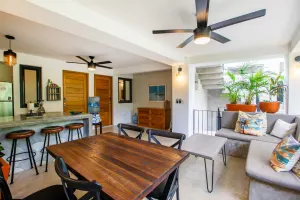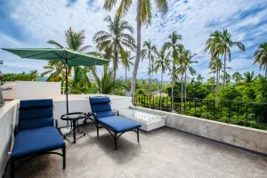 Sign In Create free accountWelcome to Villa Dorado in Sayulita's North Side, Gated, Beachfront Community - Villas del Palmar! Dorado B is one of our most flexible suites. Accommodating 4 people, this luxurious suite has been designed for 2 couples, single professionals, or families of 4. It features 2 seperate bedrooms (each with queen beds) and 2 private ensuite bathrooms. Each space locks off individually and is independently climate controlled. The open-air living space features a most relaxing lounge area for taking advantage of the traditional daily siesta. The modern kitchen is fully equipped. 4 stools and sit-up bar enhance social gatherings around the expansive kitchen island. All this surrounds your dedicated dining area rounding out a contemporary suite that guarantees a mellow, memorable and most relaxing Sayuita Vacation!