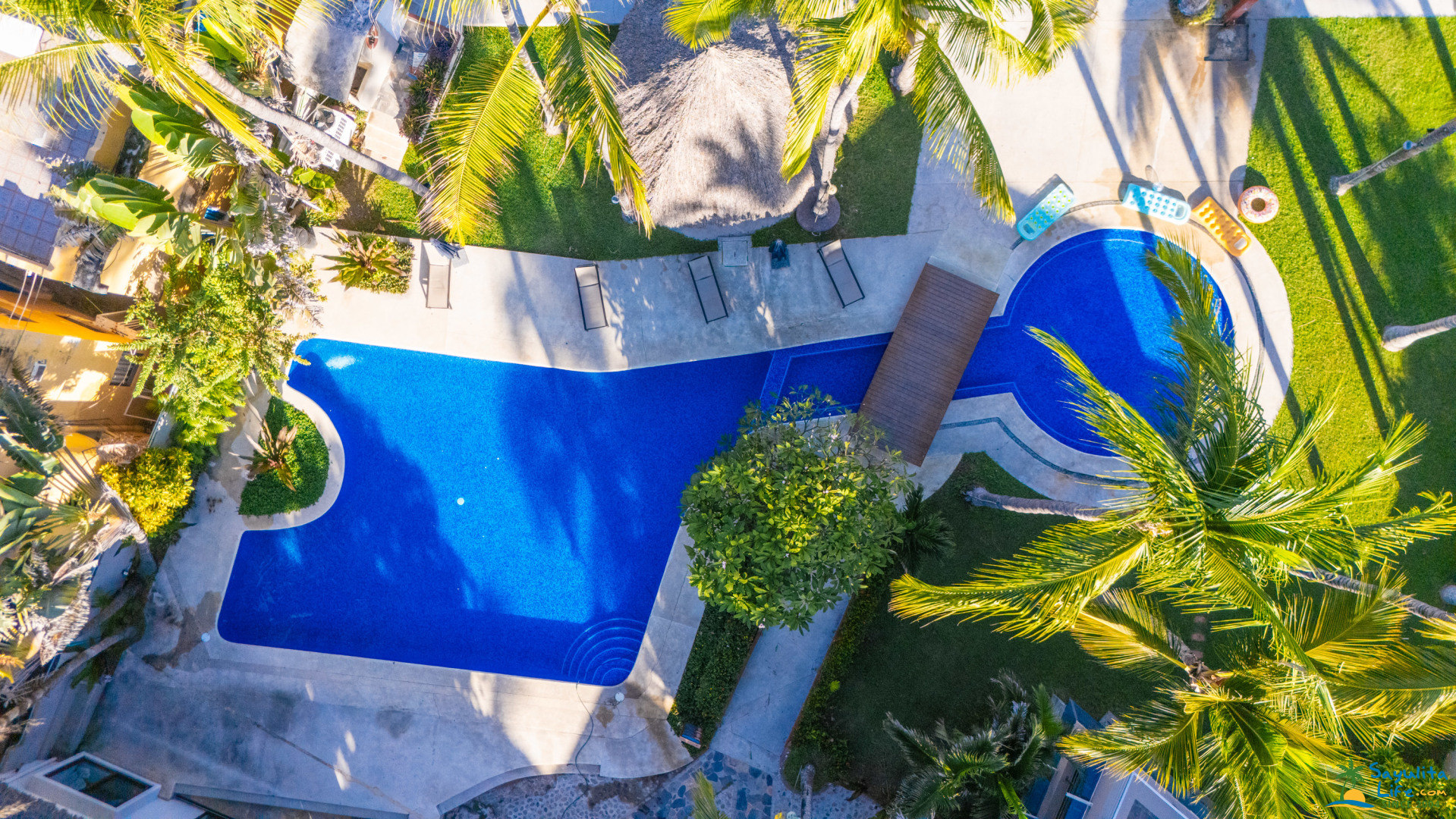 - Large, heated, beachfront Pool complete with lounge chairs – Refresh, relax, repeat. Take a dip in the tranquil, sun-drenched heated pool, framed by lush greenery and handcrafted tilework.