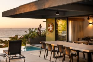 Steps away from the sand at the quiet North end of Sayulita, Casa Kiara is tropical indoor / outdoor living at its best. Palapas and infinity pool, nestled amongst the lush tropical landscaping, create a little oasis. A quick cab or golf cart ride, or 15 minute walk into town along the road or the beach, makes it just far enough away from the busy town center.