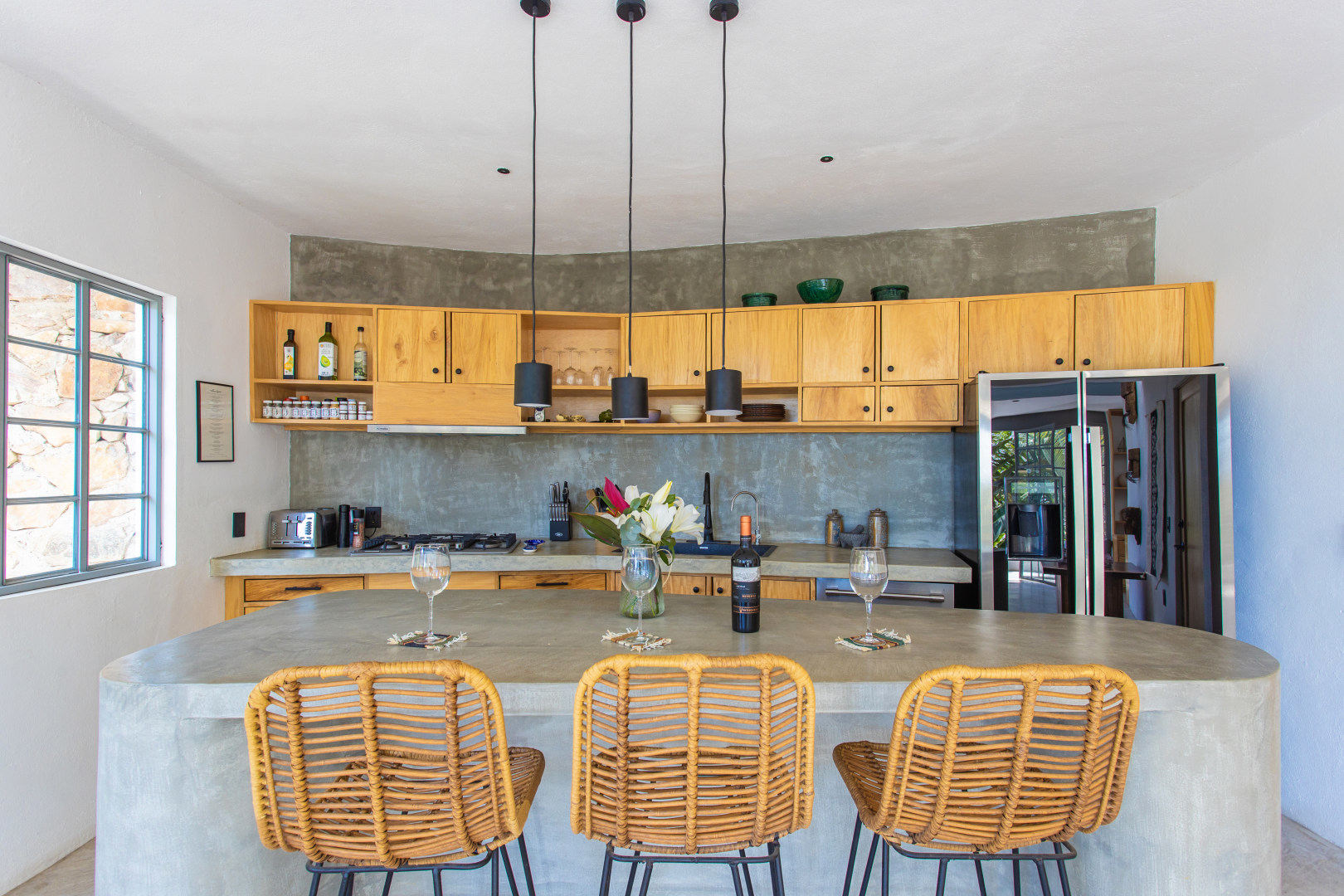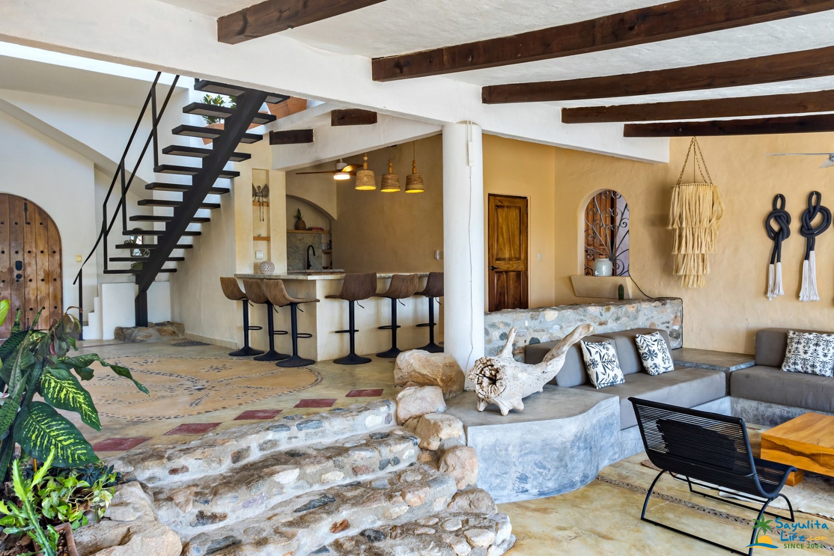 The Main House at Casa Nicoya is comprised of three bedrooms, and three and a half baths on two levels, each with their own fully-equipped kitchen and lounge area. Perfectly situated overlooking twinkly Sayulita you will enjoy taking in the ocean to the North, and breathtaking sunsets to the West.