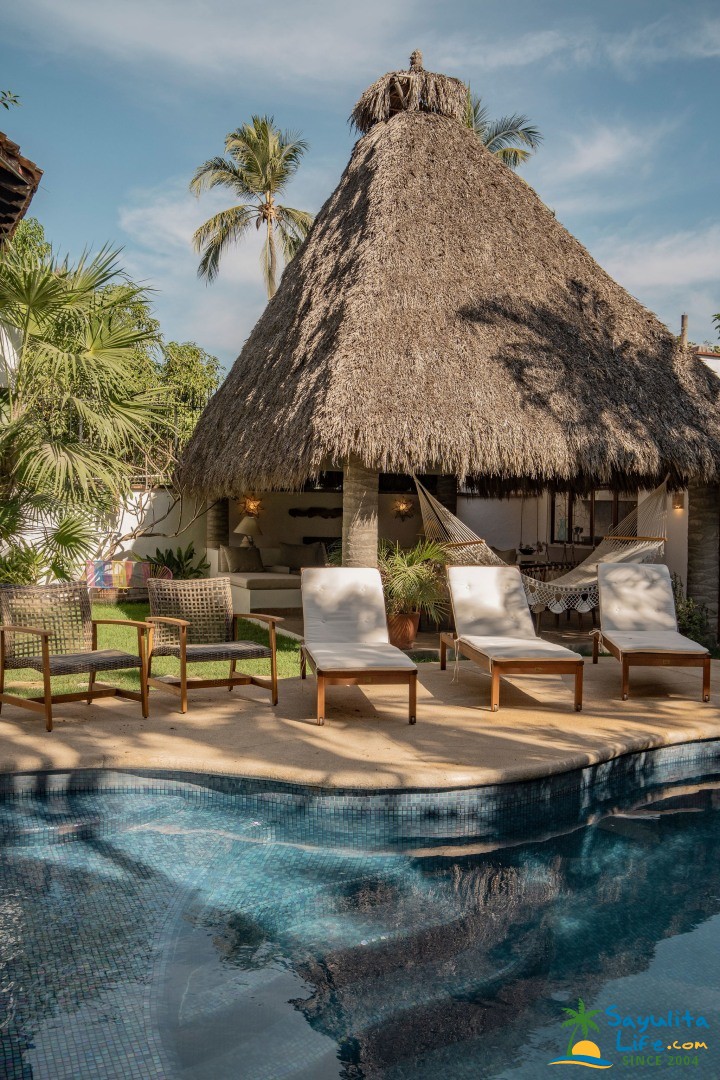 Casa Norte's amenities include being close to town yet in a quiet neighborhood, a large swimming pool, outdoor living spaces with a fan equipped palapa for entertaining quests, a fully equipped kitchen, comfortable and clean furniture, A/C in every room, spacious bathrooms with luxury linens, a washer and dryer for your convenience, and an excellent housekeeper to tidy up for you, Casa Norte will provide you with the complete Sayulita experience.