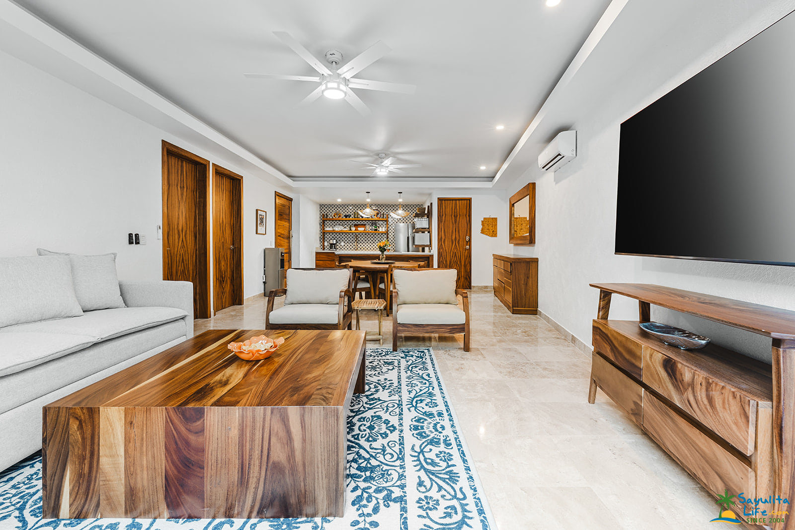 Recently renovated and designed with comfort and ease in mind, Pajaro 406 feels more like a luxury suite than a typical one-bedroom. A short, light flight of stairs leads to the entrance, and the experience truly begins the moment you open the door. The open layout flows seamlessly into a large private terrace that extends the living space and invites relaxation at any time of day.
