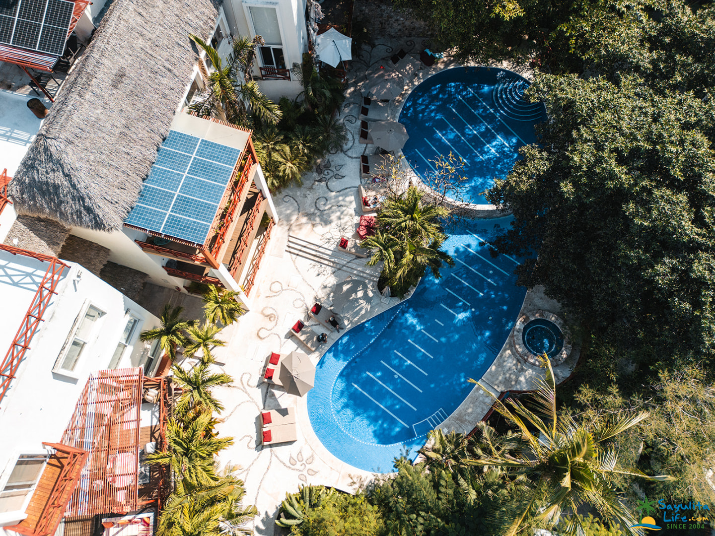 Guests enjoy access to one of the largest pool areas in Sayulita, lush tropical gardens, and rooftop lookout points with panoramic views of the entire bay. Daily maid service, underground garage parking, and 24-hour gated security are included, with one of the two pools heated during the winter months.