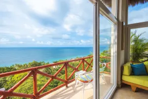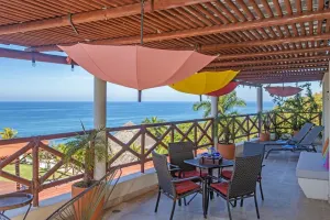 With 190 square meters, this spacious vacation home has 2 bedrooms, 2 bathrooms, terraces that boast impressive views of the ocean, jungle and surrounding jungle mountains. The condo includes a master suite with ensuite bath, direct balcony access, and a king sized bed. The guest room has 3 twin beds. There is a modern state-of-the art kitchen, wifi internet, and air conditioning throughout.