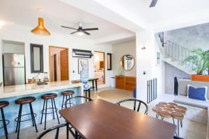 Sign In Create free accountWelcome to Villa Robalo PH on Sayulita's mellow and highly sought after North Side! This multi-level Penthouse was designed for discerning couples in mind. The climate controlled sleeping quarters feature a king-size bed adjacent to a large sliding glass door for a peaceful, private, open-air feel. The fully equipped kitchen, complete with sit-up bar against quartz countertops, expansive lounge area, and dedicated office space, further enhance your stay with all the conveniences and comforts of home.