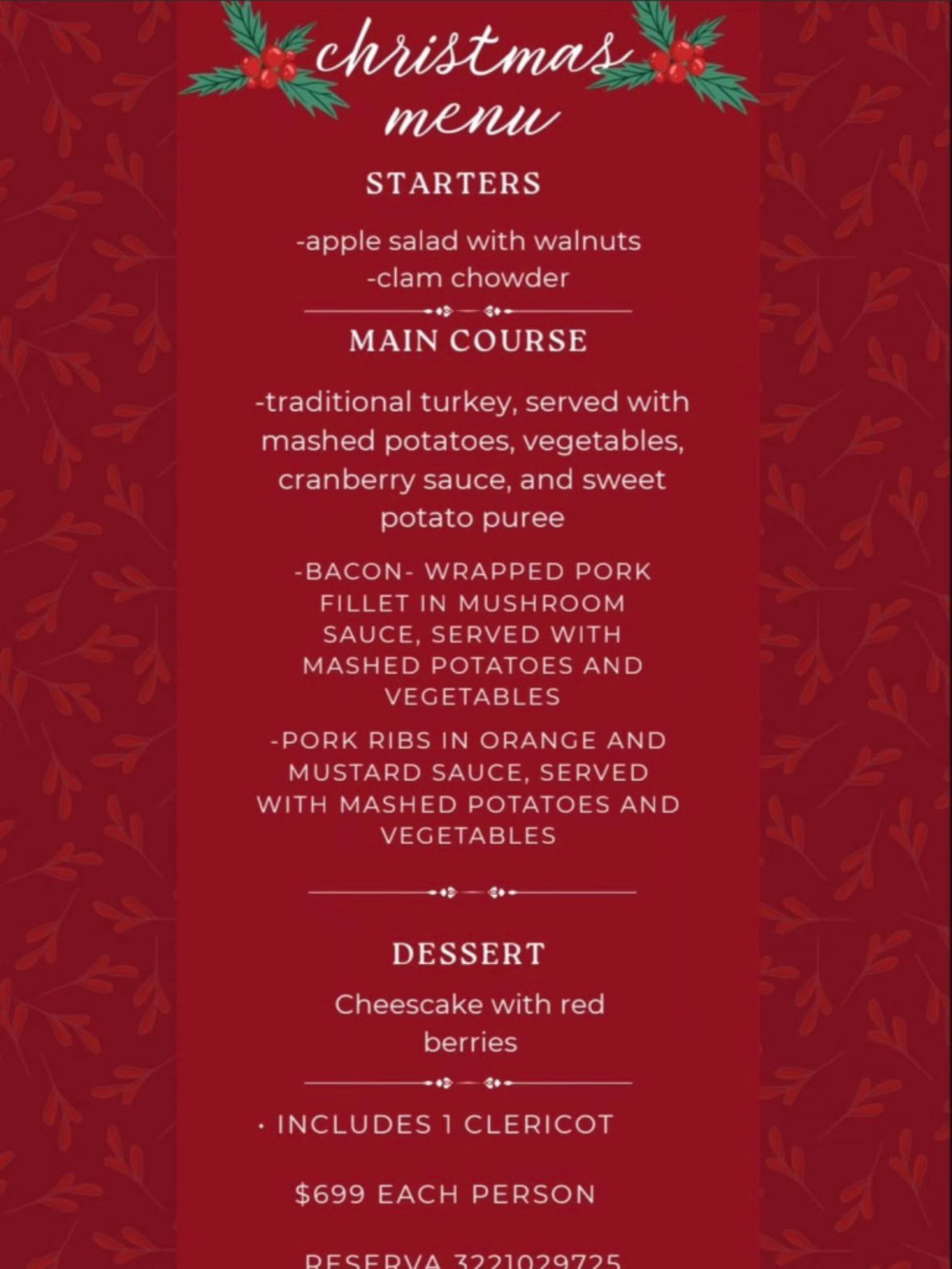 Please view below for this year’s Christmas Menus for restaurants in town. More Menus and restaurants will be added leading up to Christmas.