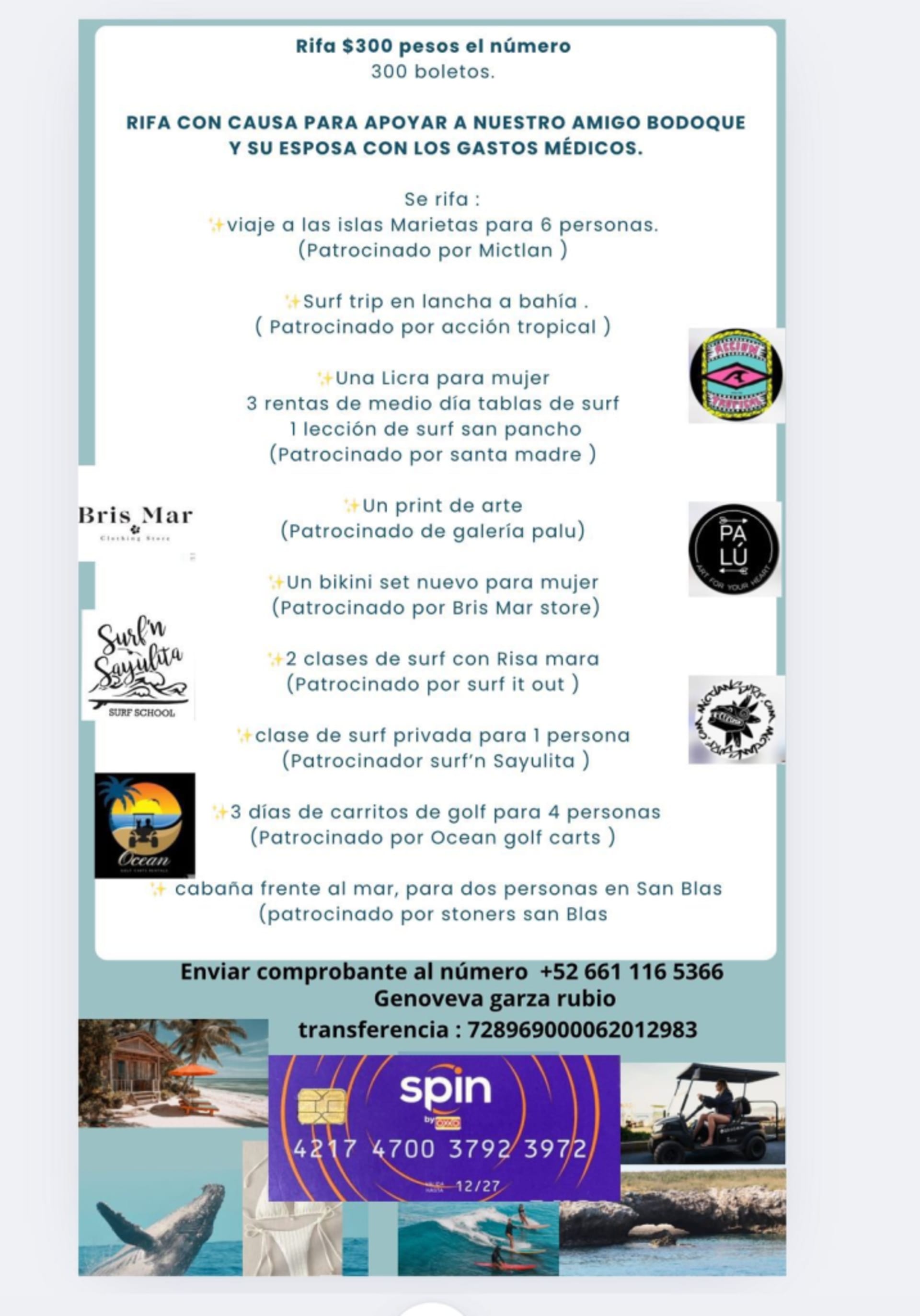 Our Sayulita community is rallying together to support Felipe “Bodoque”, a well-known local surfer and friend to many, and his wife Ashleigh, who recently experienced a deeply difficult family loss and unexpected medical complications. Friends and neighbors have organized a Rifa con Causa to help ease their medical expenses, and the response has already shown just how strong our Sayulita spirit is.