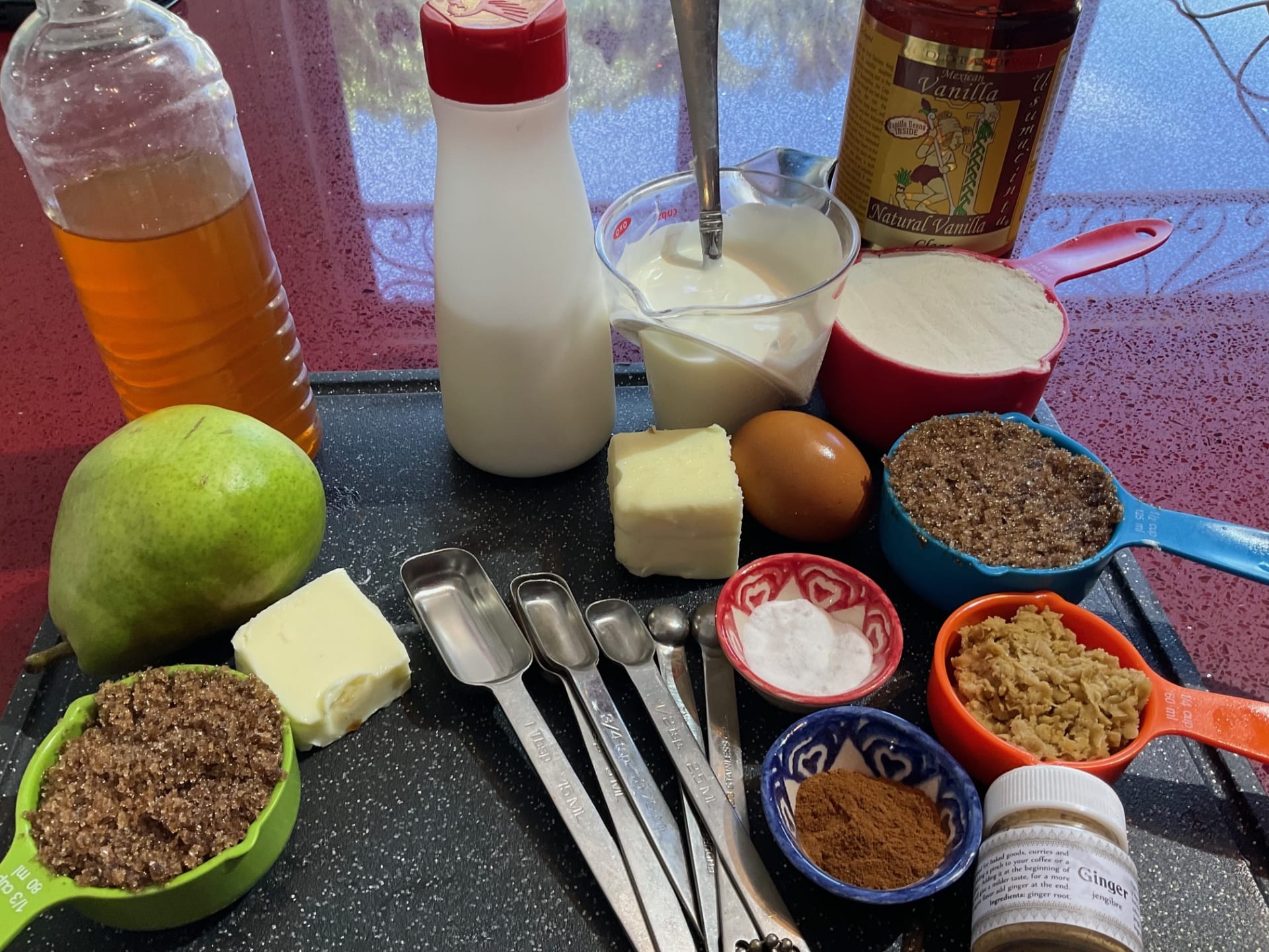 My children, like their mother, are all Foodies, and yesterday my youngest sent me a recipe for an Upside-down Pear Gingerbread Cake. She said that it was the BEST cake she had ever tasted! So being the baker that I am…I searched for the ingredients that I did not have in my pantry. I found what I needed right here in Sayulita! I came back to my kitchen and immediately began to make the recipe. OMG, she was soooso correct. This cake is more than worth it. Every bite was what I would call “orgasmic”!!! The BEST ever! If you do not make any other cake for the holidays…please make this one.