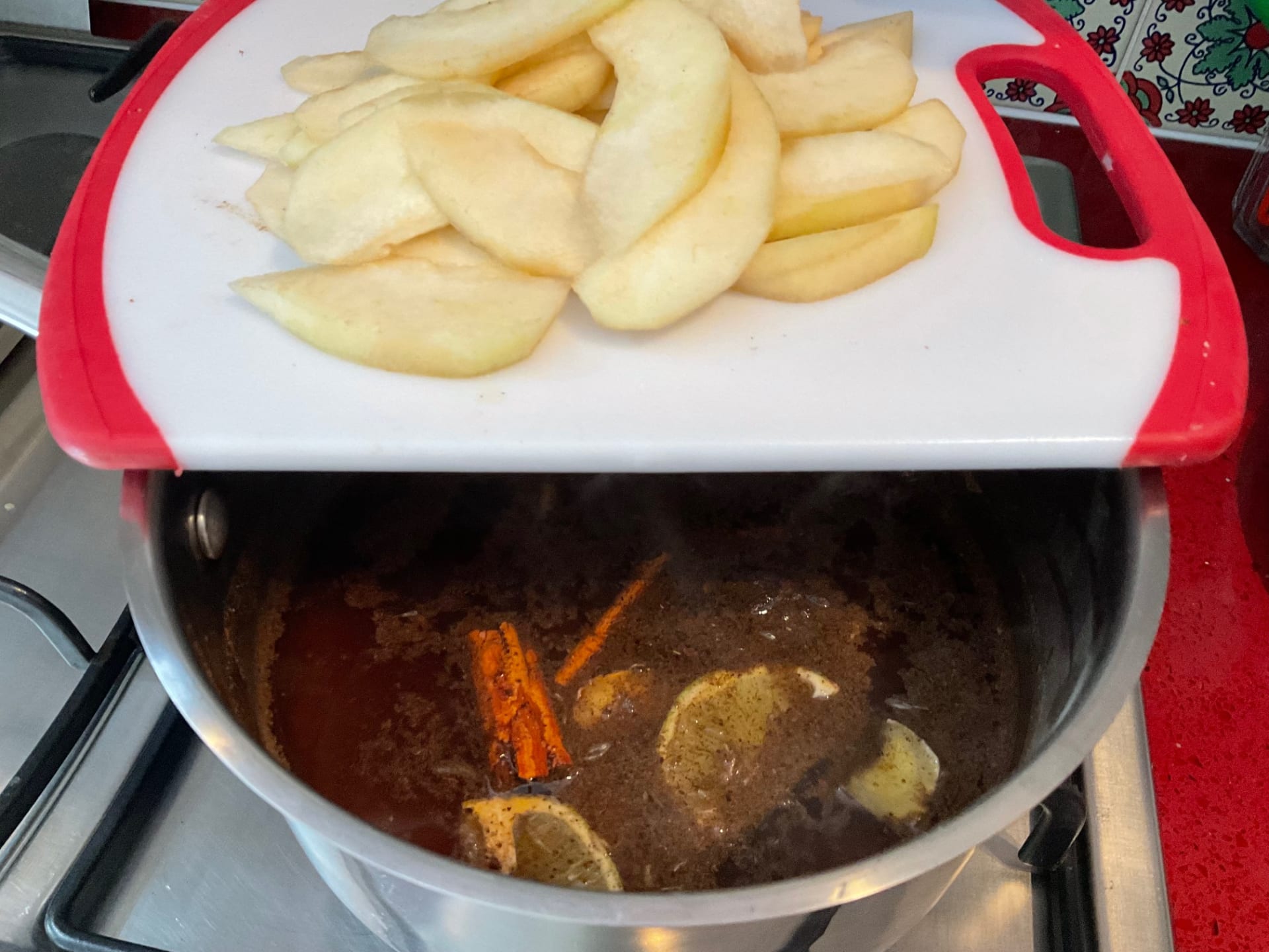 mine were rock hard so I peeled, cored, and sliced them thinly. Then I poached them just until they were fork tender.
