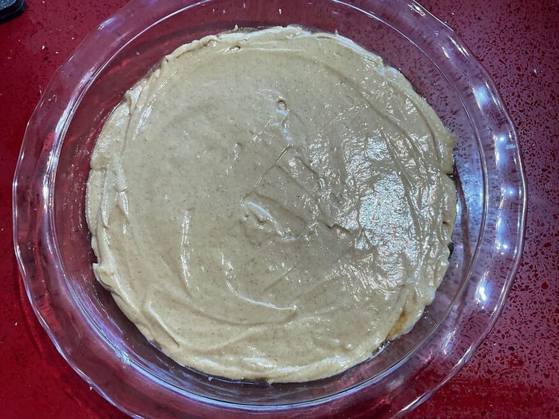 I used my deep pie plate but you can also use a 9 or 10” round cake pan.