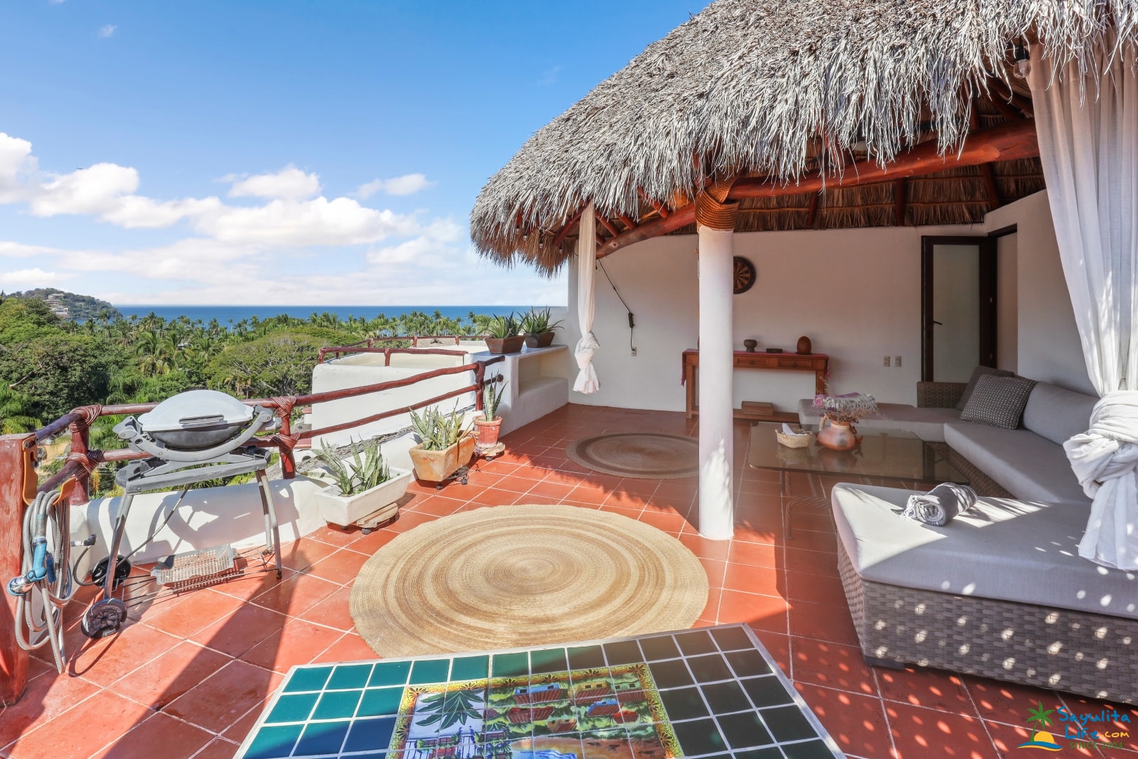 Located just two blocks from the beach in the exclusive Los Amendros Condominiums, VILLA VERANDA has two bedrooms, two baths and a palapa covered roof top terrace overlooking the ocean. Completely gated with reception area for guests, huge swimming pool, lovely gardens and plenty of outdoor space for entertaining, lounging and relaxing. VILLA VERANDA is an easy walk to the beach and downtown Sayulita.