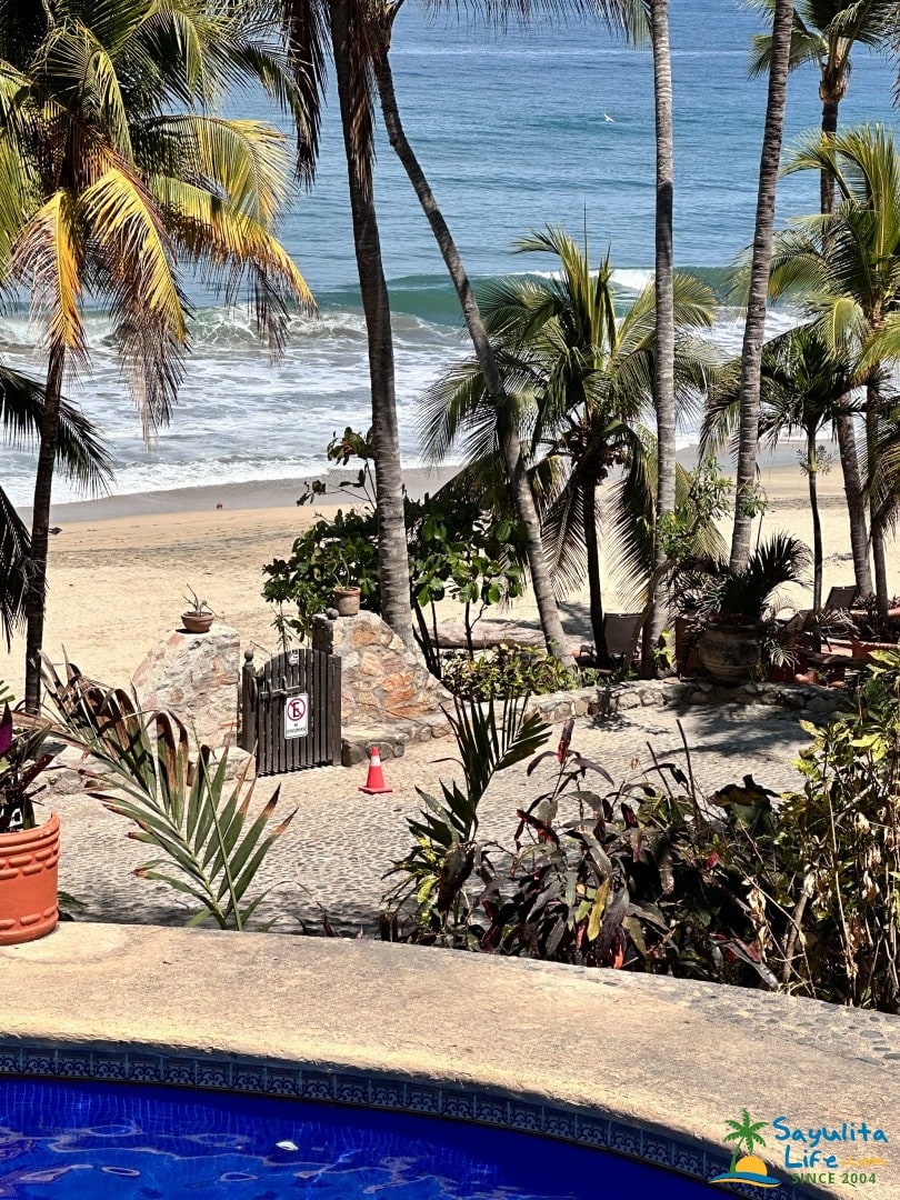 A cobblestone stairway to the beach leads down through lush gardens of heliconia, palms, and gingers to your own private entrance to the north end of Sayulita beach (Playa Norte.) There are trails to the pristine beaches to the North, about a 20 minute walk. You can also continue on to San Pancho, the next town North and take a cab back, if you wish.