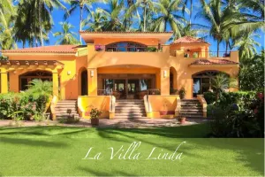 Villa Linda - Stunning Palladian retreat that offers beachfront luxury with elegant architecture and lush gardens. The highlight is a second-floor deck with a covered palapa and outdoor kitchen, perfect for ocean-view dining. Inside, two en-suite bedrooms and a loft provide comfort, while hand-painted murals and vaulted ceilings add charm. Nearly every corner showcases breathtaking ocean views.
