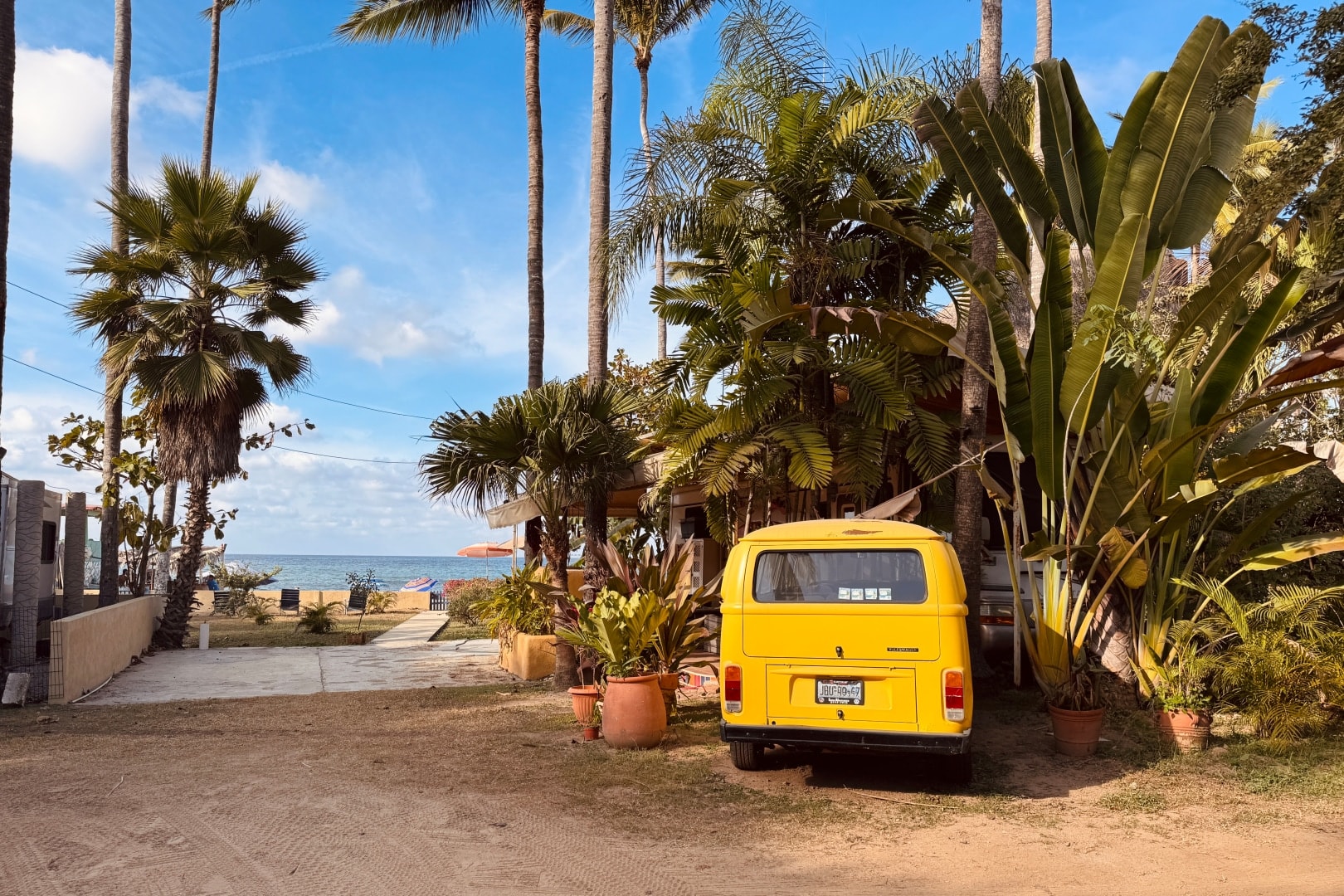 Set under mature palms just steps from the Pacific, the property offers private bungalows and beachfront RV sites. Bungalows feature fully equipped kitchens, private bathrooms, King beds, high-speed WiFi, and many include AC and balconies.