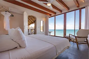 Villa Serenata in Sayulita, is a luxurious 1-bedroom oceanfront villa located on the third floor of the charming Villa Amor hotel. This exquisite villa offers a perfect combination of modern comfort and natural beauty, providing you with an unforgettable beachfront experience. As you step into the villa, you will be greeted by a bright and airy atmosphere, adorned with contemporary furnishings and soothing coastal colors.