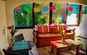 Villa Azul in Sayulita is perfect for a family travelling with small children or for a couple. Villa Azul comes with a full kitchen, spacious living space, private balcony, a plush king sized bed plus 2 couches in the living room with single mattresses. There are blackout curtains and air conditioning for your comfort as well as a beautiful, shared rooftop terrace perfect for happy hour and watching the sun go down.
