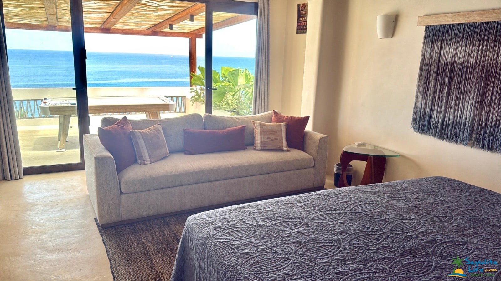 The heated saltwater pool, oceanfront patio seating, and both indoor and outdoor dining areas create the perfect setting for relaxing afternoons and unforgettable Sayulita sunsets. Each bedroom includes its own patio and a beautiful view.